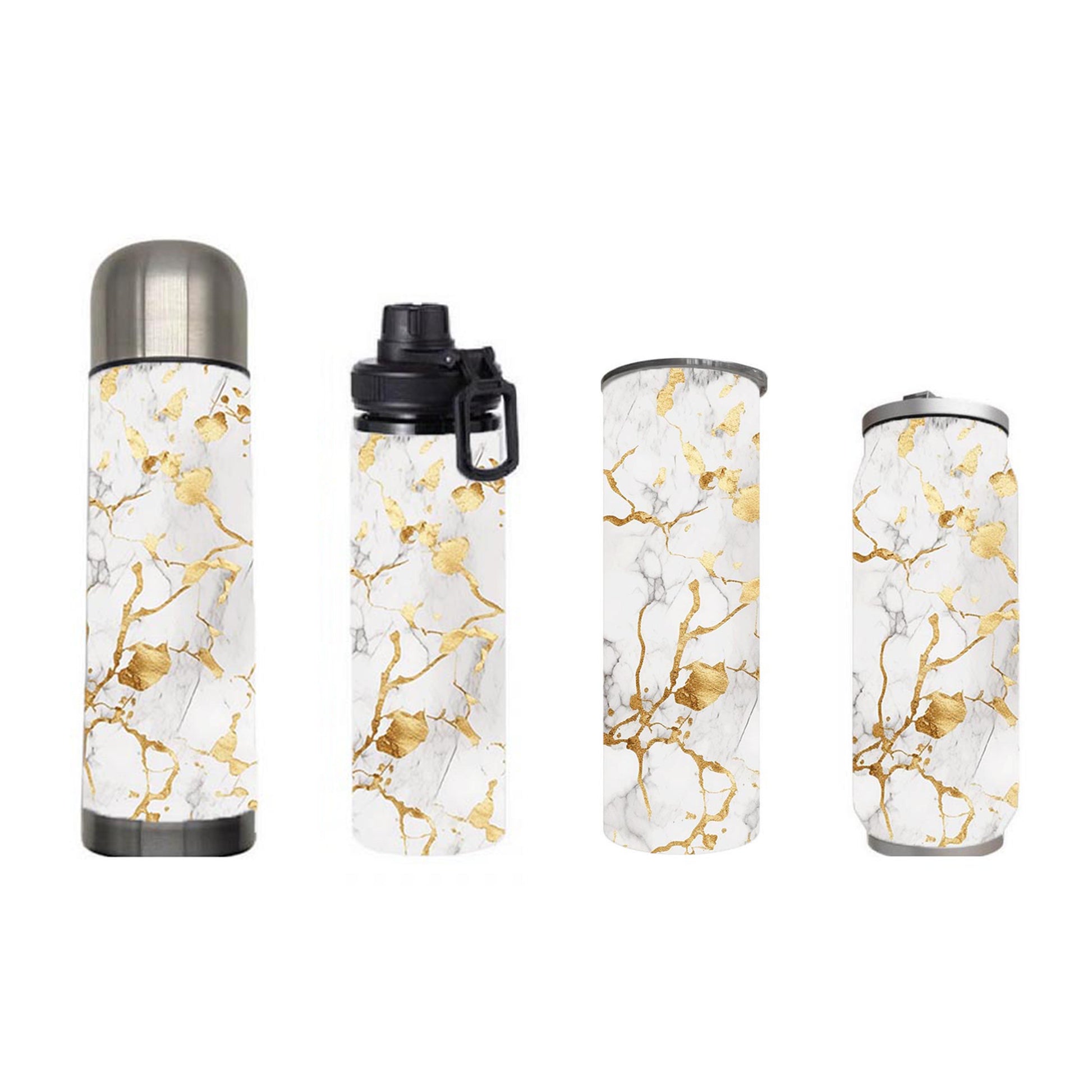 Marble - White and Gold Marble Design on Tumbler, Can, Flask, or Water bottle