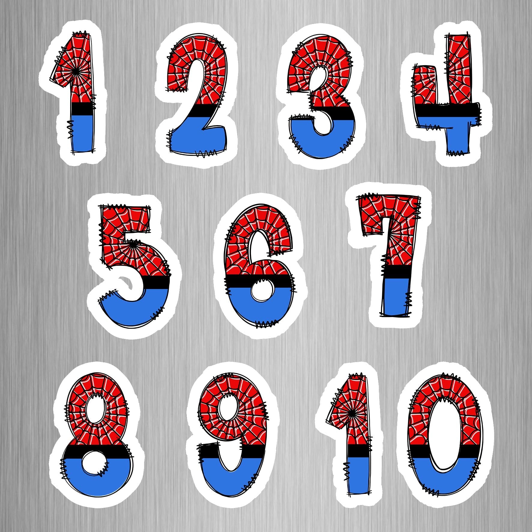 Spiderman Theme Numbers Photo Fridge Magnets - (10 PER PACK) (UK)